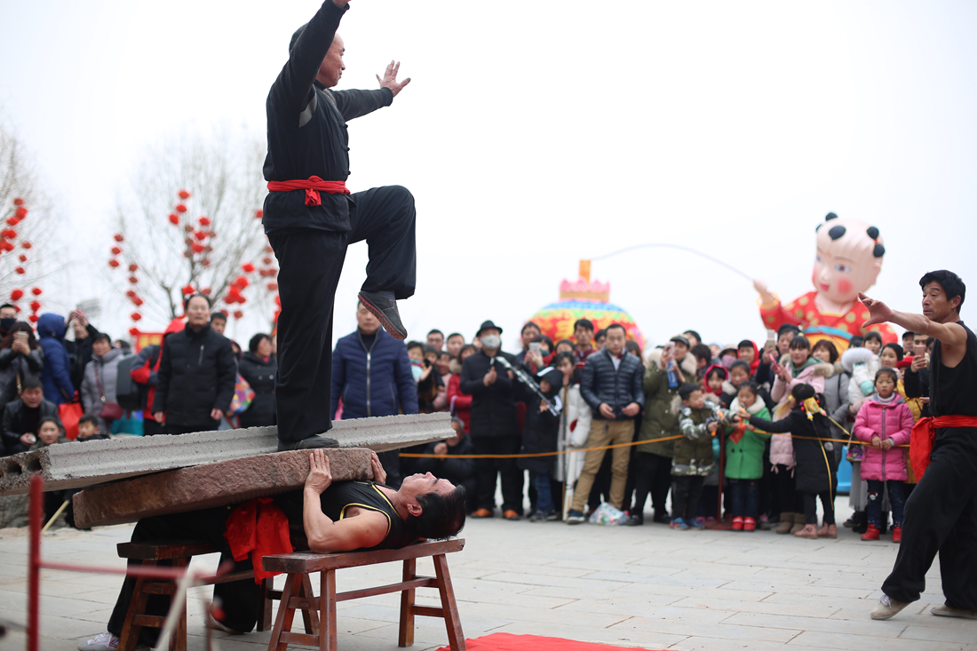 Chinese folk acrobats perform unique acrobatic feats at a temple fair held to celebrate Spring Festival in Kaifeng, Central China's Henan Province on January 31, 2017. Photos: CFP