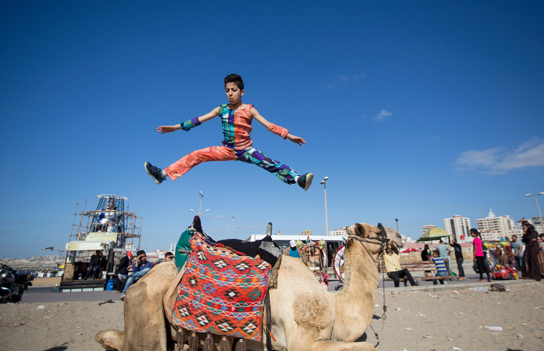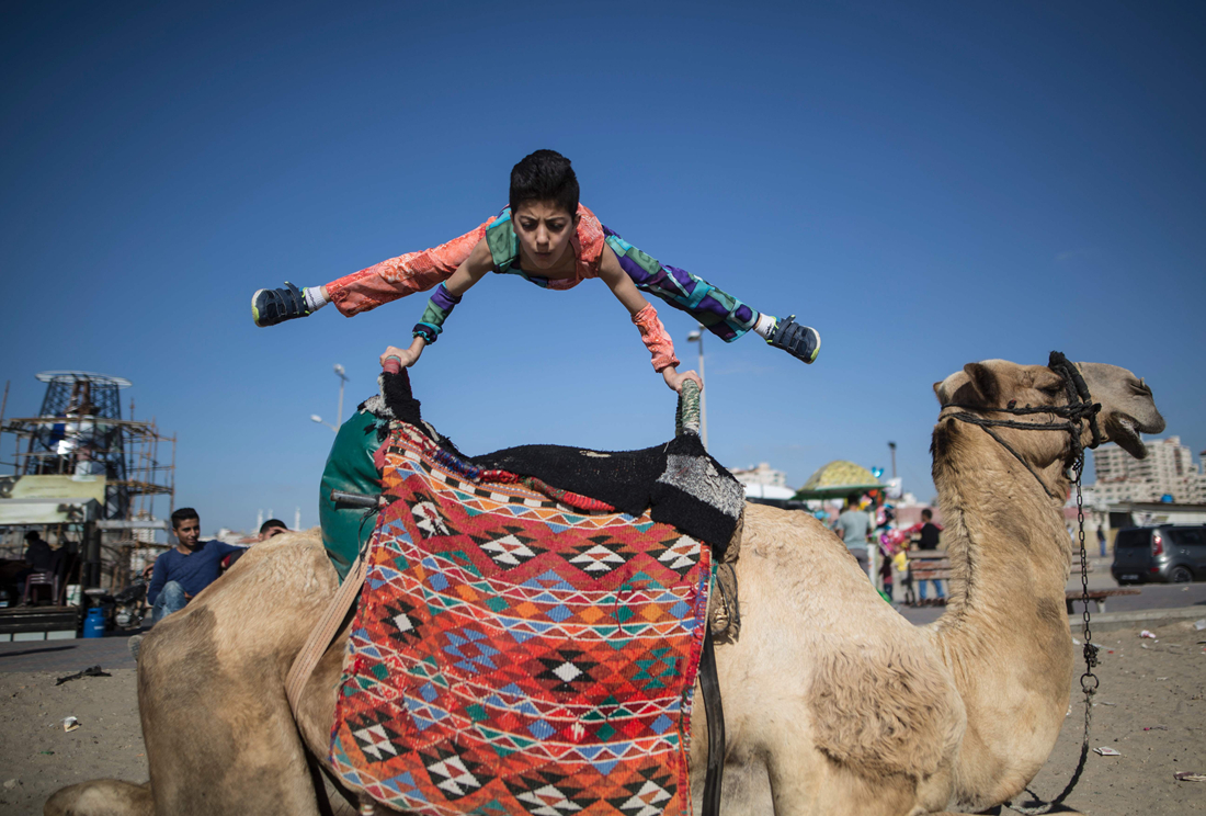 File photo: Twelve-year-old Palestinian teenager Mohammed al-Sheikh shows off his skills in Gaza City on April 28, 2016. Photo: Mahmud Hams/CFP figcaption >
