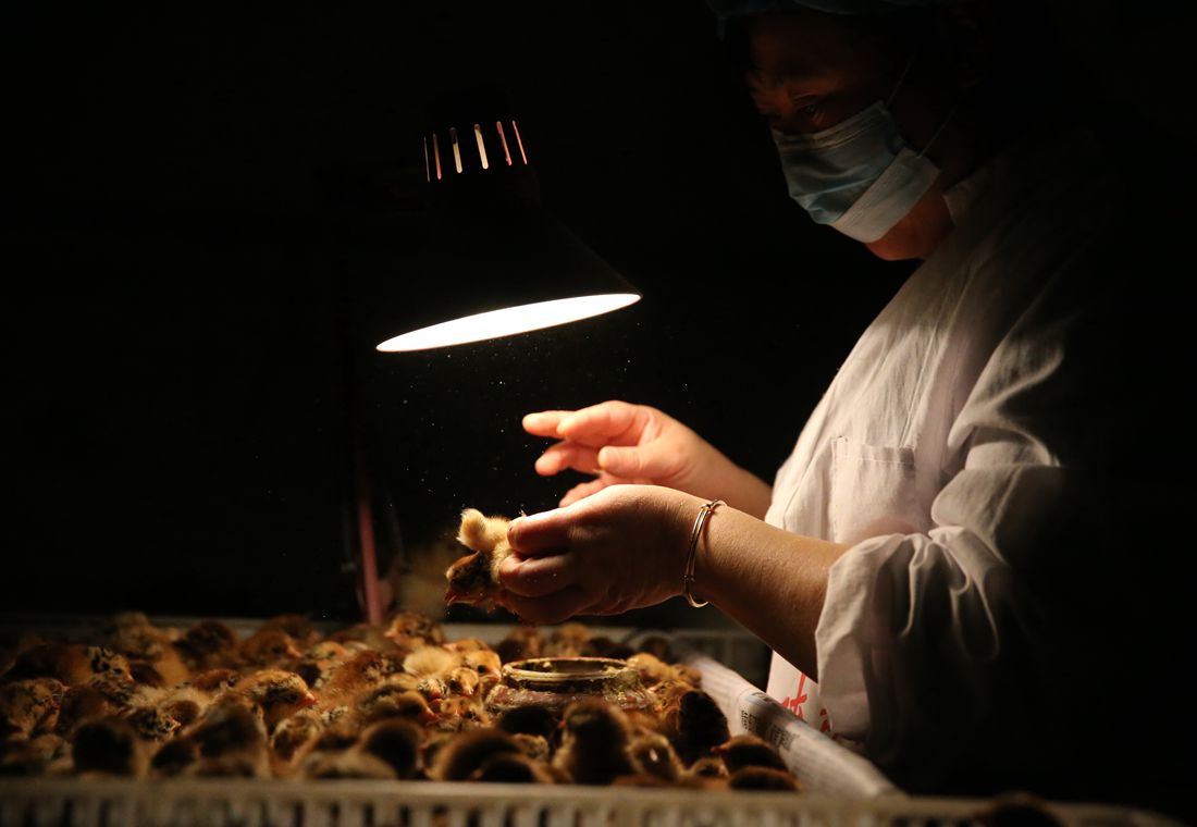 A chicken sexer examines chicks at a hatchery in Gaoling district in Xi’an on February 7, 2017. Photo: CFP figcaption >