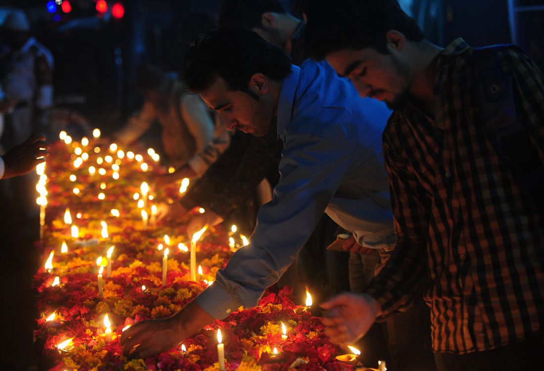 Pakistani Shiite Muslims light candles during a vigil in Karachi on February 14, 2017, to pay tribute to the victims of a suicide bombing in Lahore. Photo: ASIF HASSAN / CFP
