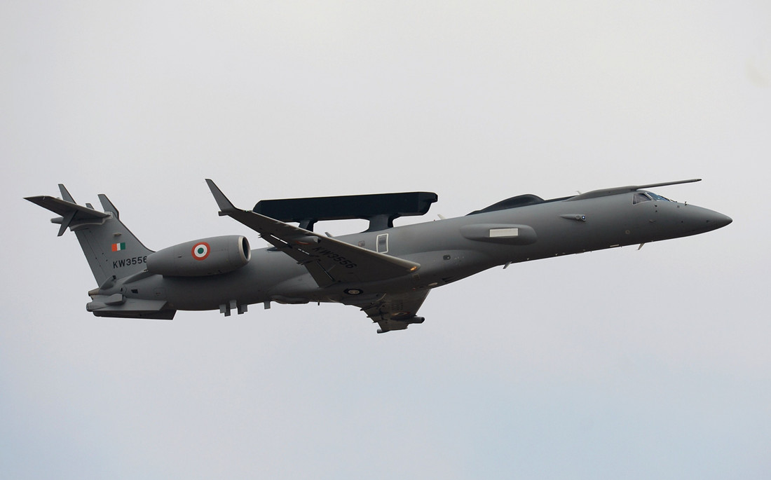 An Embraer ERJ 145 aircraft of the Indian Air Force displays the 11th edition of Aero India, a biennial air show and aviation exhibition, in Bangalore on February 14, 2017. Photo:CFP/MANJUNATH KIRAN figcaption >