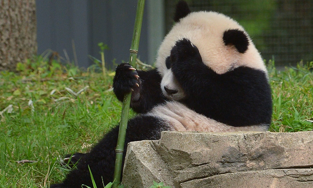Baobao covers her eyes with her paw during her birthday celebrations at the National Zoo in Washington, US on August 23, 2014. figcaption >