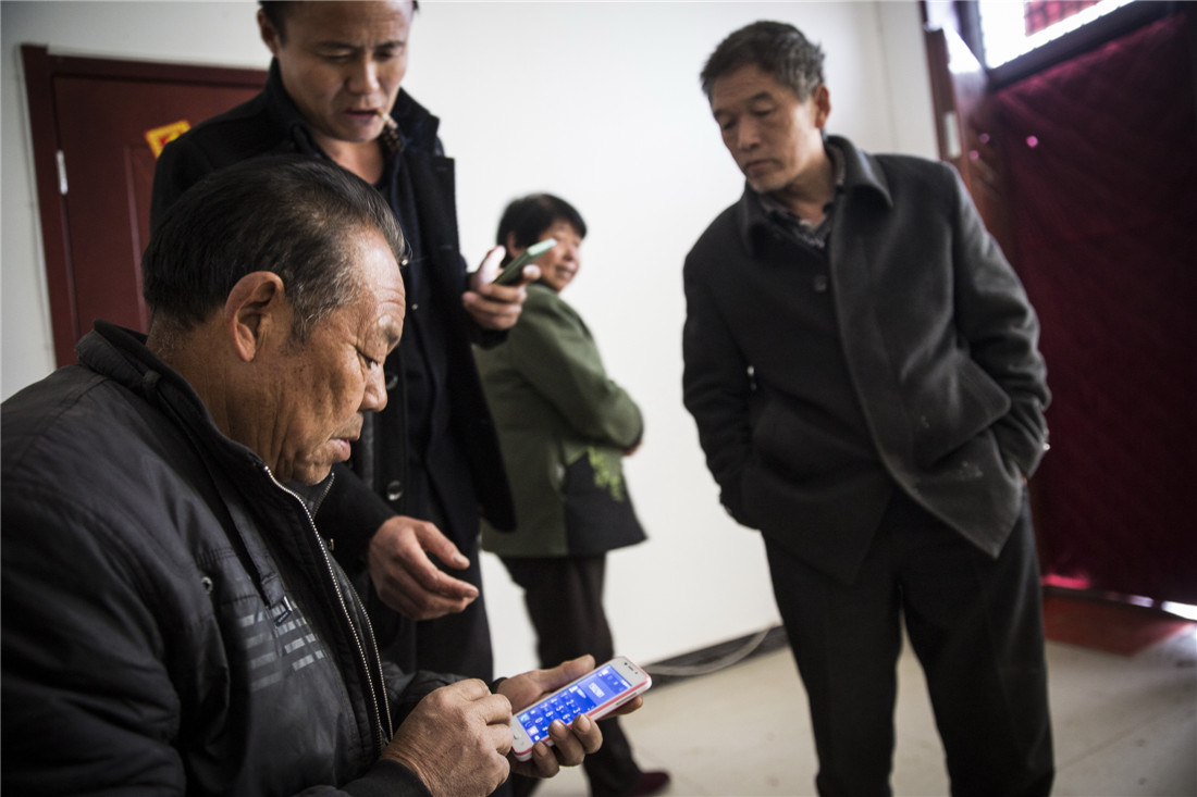 Li (left) meets with some clients at his home on March 19, 2015 in Yan'an, Shaanxi Province. Farmers seek Li's services just ahead of sowing season. Photo: CFP figcaption >