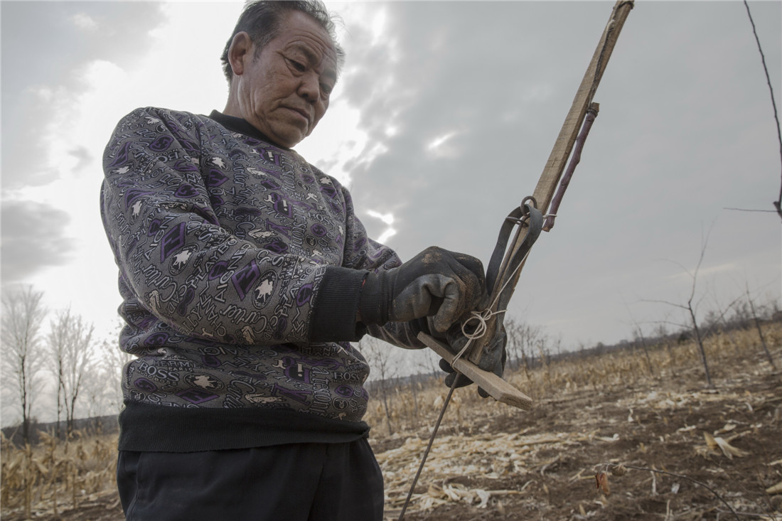 Li sets an installed trap on March 18, 2015 in Yan'an, Shaanxi Province. Photo: CFP figcaption >