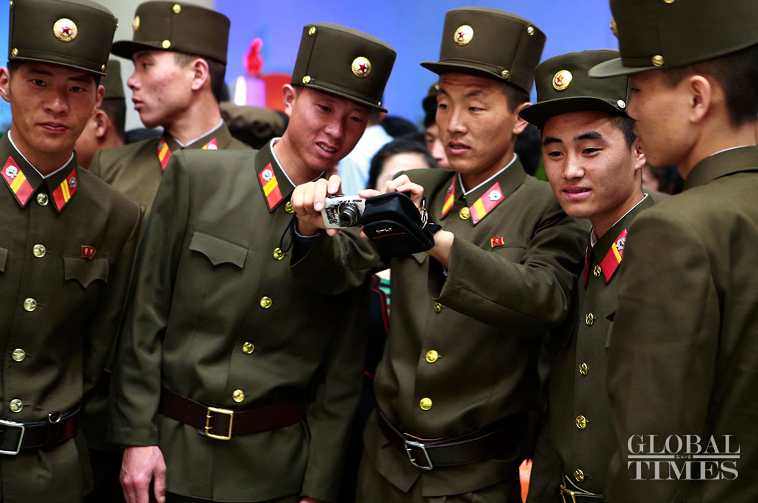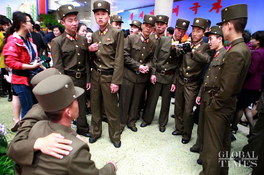 North Korean soldiers visit the Kim Il-sung Flower Show in Pyongyang on April 16. Photo: Li Hao/GT figcaption >
