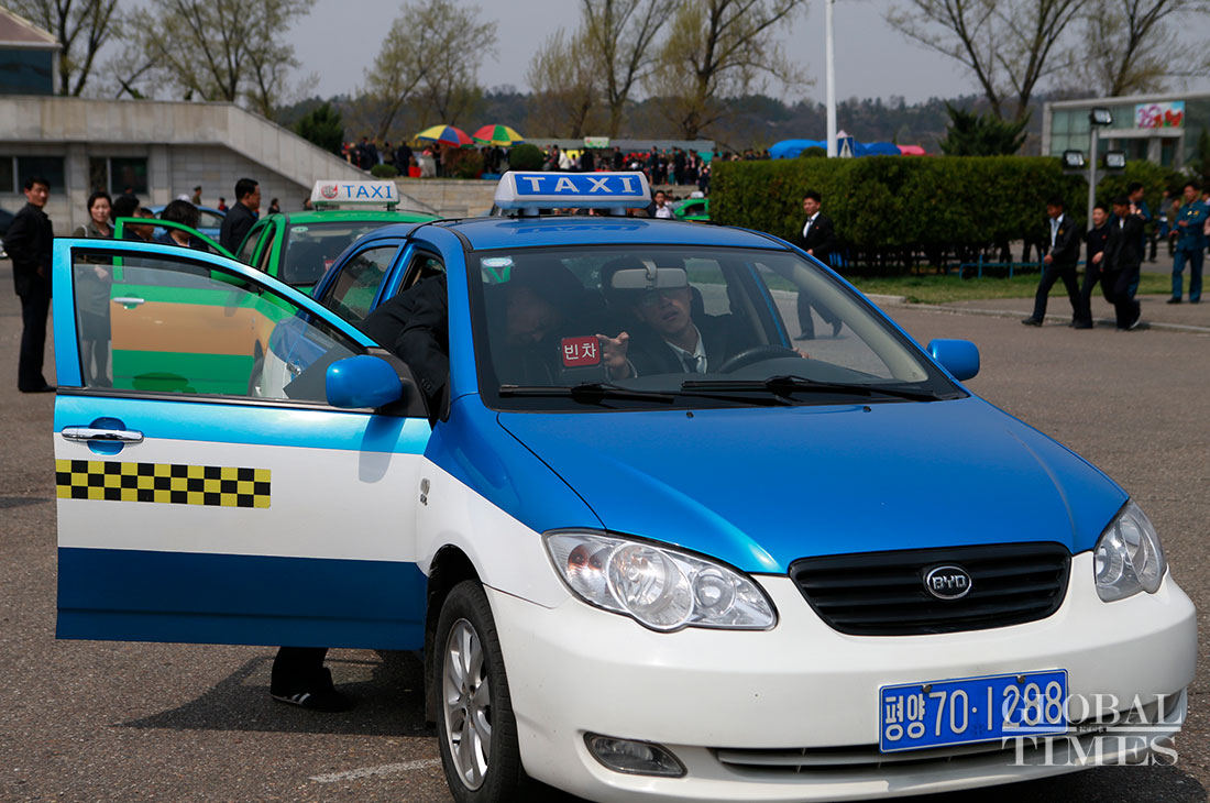 A taxi driver picks up a fare at East Pyongyang Grand Theatre on April 16. Taxi services are state-run in North Korea. Photo: Li Hao/GT figcaption >