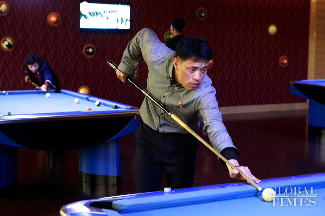 A man plays pool in a lounge at Munsu Water Park on April 16. Photo: Li Hao/GT figcaption >
