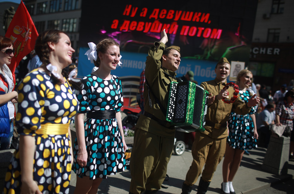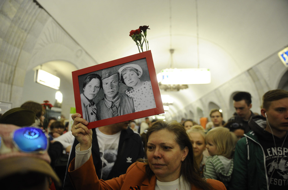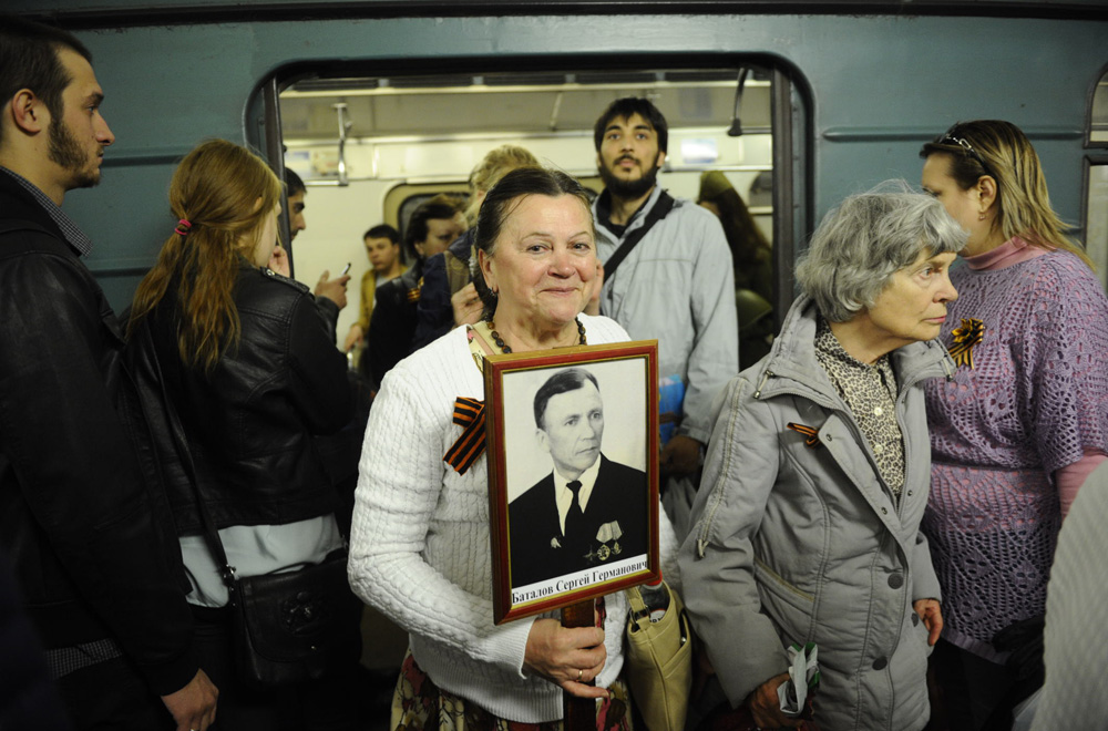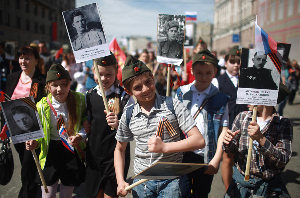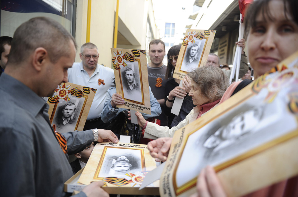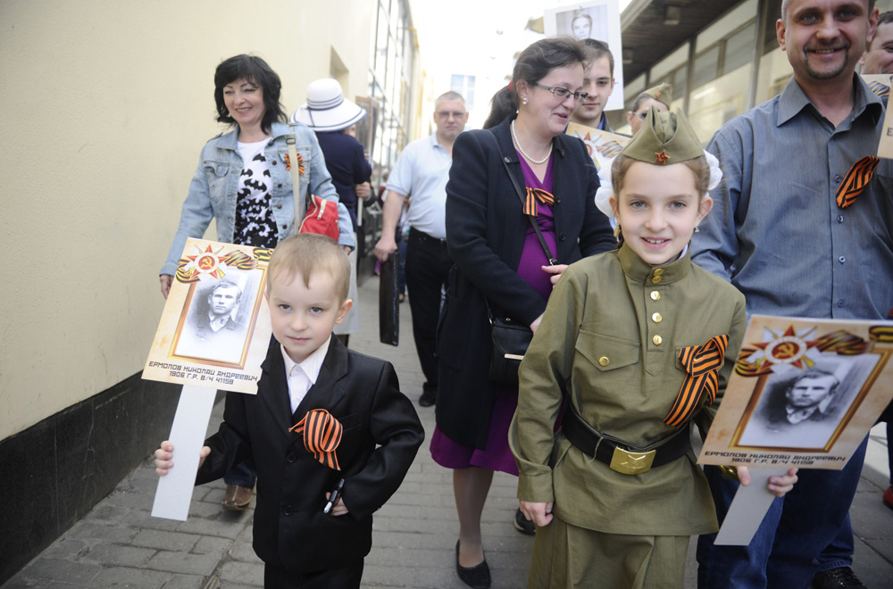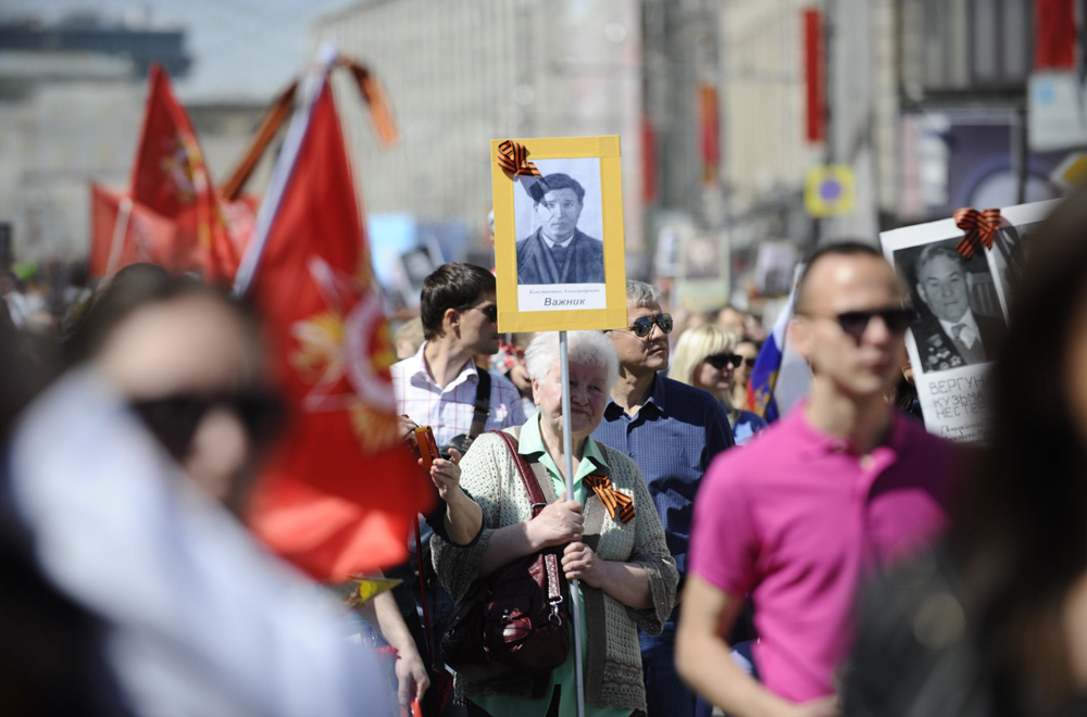 A Russian crowd of 200,000, including many veterans, joined a parade called “immortal heroes” in Tverskaya Street to honor their relatives who died in WW II during 70th anniversary celebrations of the Victory in WWII on May 9, 2015. Photo: Li Hao/GT figcaption >
