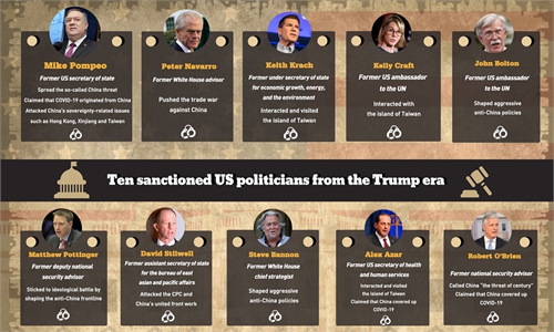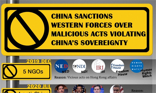 China's list of sanctions against Western forces over their meddling in China's domestic affairs related to HK, Taiwan and Xinjiang.
