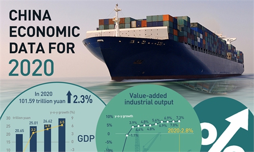 China's GDP topped 100 tln yuan for first time, reaching 101.59 tln yuan with 2.3% y-o-y expansion in 2020, said NBS official on Mon. ...