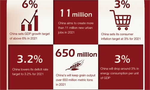 China sets GDP growth target of above 6 % in 2021, in show of post-COVID confidence.