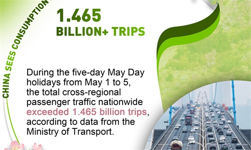China sees consumption boom during May Day holidays -Tourism spending on domestic trips up 8% y-o-y -Sales at major retail and catering enterprises up 6.3% y-o-y -Sales ...