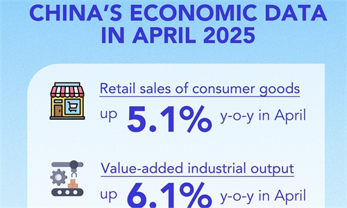 China's economy showed steady growth in April: -Retail sales of consumer goods up 5.1% y-o-y -Value-added industrial output up 6.1% y-o-y -Foreign trade up 5.6% y-o-y ...