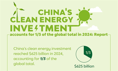 China's clean energy investment reached $625 billion in 2024, accounting for 1/3 of the global total.