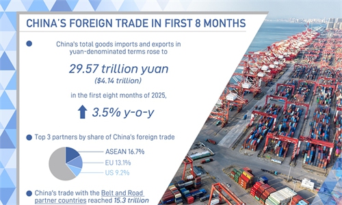 #China's total goods imports and exports in yuan-denominated terms rose to 29.57 trillion yuan ($4.14 trillion) in the first eight months of 2025, up ...