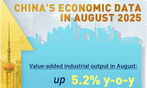 China's economy picked up pace in Aug: - Value-added industrial output up 5.3% y-o-y - Urban unemployment rate stable at 5.1% - Investment ...