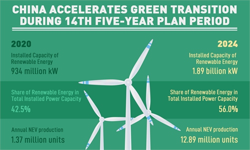 From renewables to new energy vehicles, China is speeding up its green transition during the 14th Five-Year Plan period(2021-2025).
