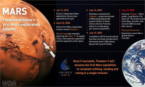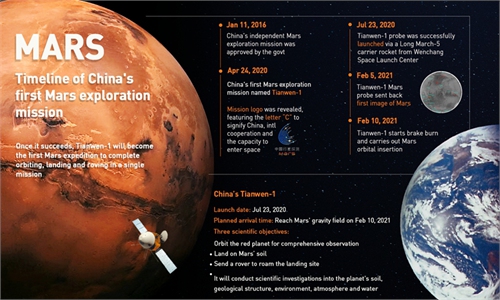 China's Tianwen-1 Mars probe is expected to reach Mars' gravity field in February 2021, about seven months after the launch.