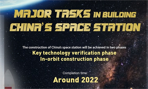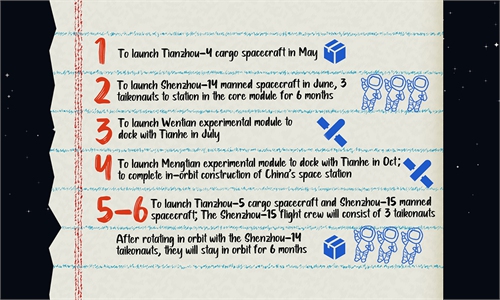 Major steps toward China's Space Station: -Key tech verification phase (6 missions), including the launch of Tianhe core module cabin -In-orbit construction phase (6 missions), including ...