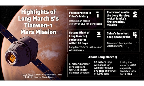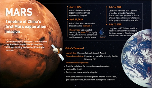 China's Tianwen-1 Mars probe is expected to reach Mars' gravity field in February 2021, about seven months after the launch.