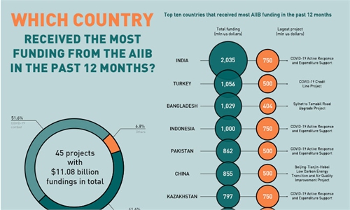 India received over $2 billion from the AIIB over the last 12 months, more than any other nation. More than 51 percent of AIIB 's total funding went to financing the fight against Covid-19.