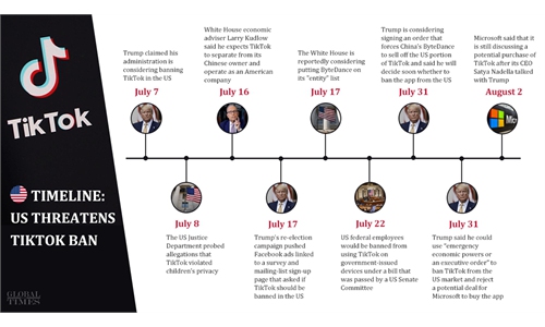 A timeline shows how the US pressured ByteDance and threatened to ban TikTok. Washington is clearly concerned about any company that challenges the high-tech hegemony of the US.
