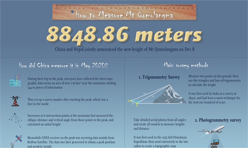 China and Nepal, the two countries whose border the world's highest peak straddles, jointly announced the "historic" new calculation of the height of Mount Qomolangma – 8,848.86 meters. How was the new height measured? Experts gave their answers.