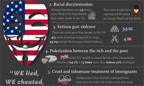 On the occasion of World Human Rights Day, the US points its fingers again at the human rights in China while turning a blind eye to its own problems. Check out the infographic to see some of US' infamous human rights abuse records: