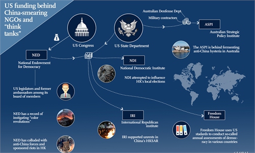 Unsurprisingly, US funding and support is behind many so-called "independent" NGOs and "think tanks" that push for “color revolutions” around the world and fabricate China-smearing campaigns. Check out the infographic for more: