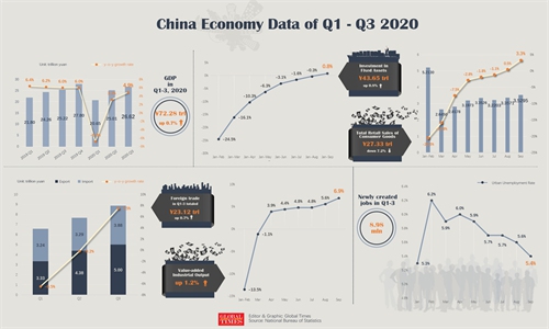 China's GDP in the third quarter expanded 4.9 percent year-on-year, causing the economy to bounce back into the positive territory of 0.7 percent growth in first three quarters, according to official data released on Monday, as the country's economic recovery accelerated amid a rebound in domestic consumption, better-than-expected exports and improving investments.