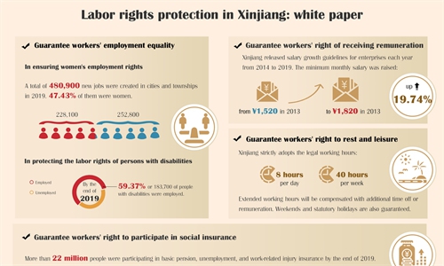 China has a large population, making employment key to guaranteeing the wellbeing of the workforce. Efforts and achievements have been made in Northwest China's Xinjiang Uygur Autonomous Region to safeguard job security and alleviate poverty. From 2014 to 2019, the total number of employees in Xinjiang rose from 11.35 million to 13.3 million, up 17.2 percent. Meanwhile, Xinjiang wiped out poverty in 25 poor counties and 3,107 villages, and Xinjiang will completely eliminate poverty by the end of 2020, according to a white paper released by the State Council Information Office on Thursday.