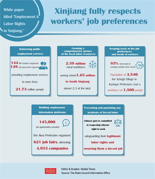 Xinjiang ensures that there is no discrimination against workers on the basis of ethnicity, region, gender, and religious belief, and that no individuals' rights are restricted because of their urban or rural status, profession or position.