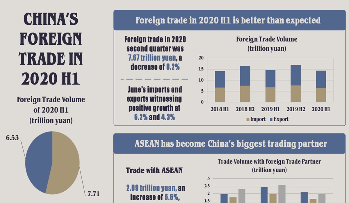 In H1 2020, impacted by COVID-19, China's total foreign trade volume is $2.04 trillion; that is, a decline ...