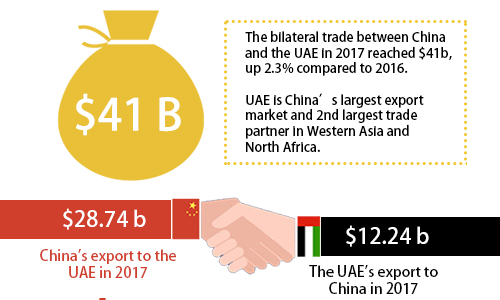 The bilateral trade between China and the UAE in 2017 reached $41b, up 2.3% compared to 2016.