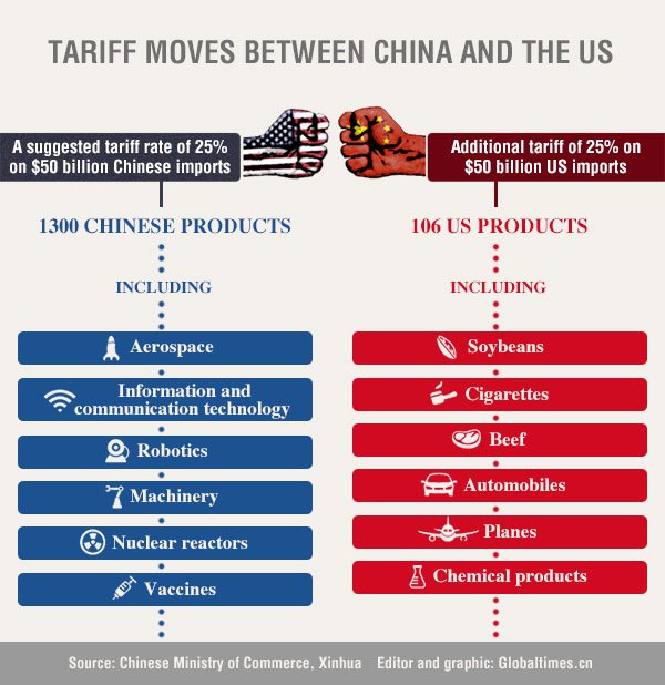 China plans to impose additional tariff of 25% on 106 items worth $50 billion imported from the US, ...