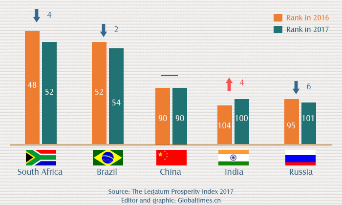 India only BRICS country to climb Legatum Prosperity Index ranking in 2017, China remains steady, while South Africa, ...