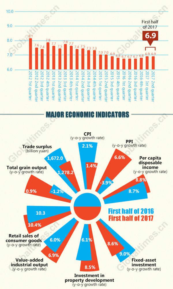 China's gross domestic product expanded 6.9 percent year on year in the first half of the year to ...