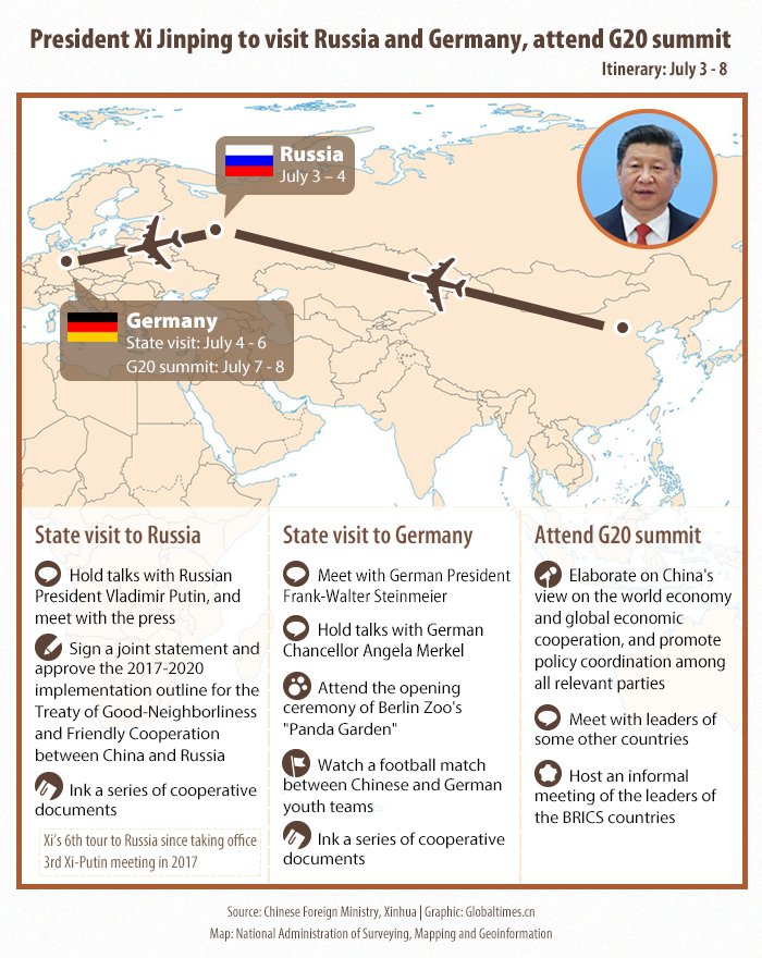Xi will pay state visits to Russia and Germany from July 3 to 6, and attend the 12th ...