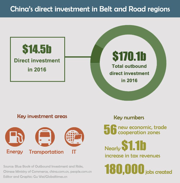 China's direct investment in Belt and Road regions reached $14.5b in 2016, or 8.5% of total direct investment ...