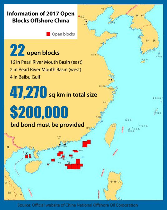 China CNOOC seeks cooperation with foreign firms on 22 open blocks offshore China in 2017, totaling 47,270 sq ...