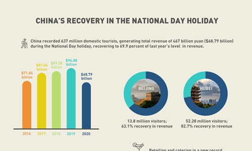 China recorded 637 million domestic tourists, generating total revenue of 467 billion yuan ($68.79 billion) during the National ...