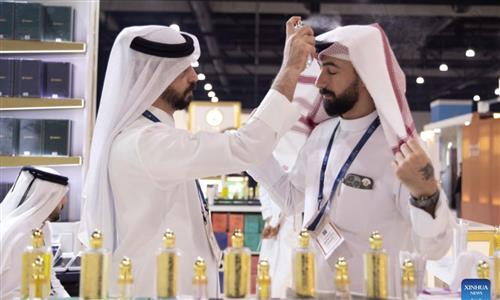 An exhibitor showcases Arabian incense at the "Scent Arabia" exhibition in Manama, Bahrain, Nov. 25, 2025. The "Scent Arabia" exhibition opened at Exhibition World Bahrain in Manama, Bahrain on Tuesday, featuring over 100 brands from the Gulf countries and worldwide, including perfumes, home fragrances and Arabian incense. The event is scheduled to run through Nov. 29.