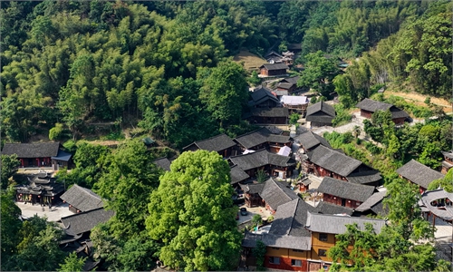 Morning mist clings to the dense forests of Jiulong Mountain, wrapping around peaks that rise like a phoenix spreading its wings. Nestled in this rugged embrace, an ancient village cascades up the slopes of the mountain as if it had grown straight from the earth, contributing to a seamless blend of humanity and nature.
