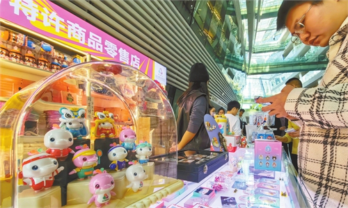 The popularity of mascots “Xiyangyang” and “Lerongrong” from China's 15th National Games and National Para Games remains high after the event. Tourists and citizens purchased mascot-themed cultural and creative products in Guangzhou, South China's Guangdong Province on November 23. Photo: VCG
