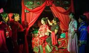 Bridegroom Shen Kai and bride Shi Shaodan take part in a traditional Chinese wedding ceremony in the ancient town of Hongjiang in Huaihua City, central China's Hunan Province, Sept. 25, 2016.