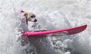 The best canine surfers gather for annual dog surfing contest at Huntington Beach, California, US on Sept. 25, 2016.
