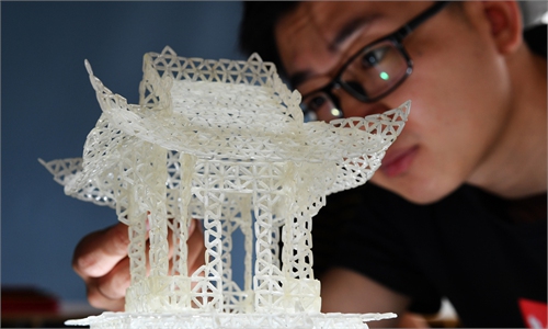 Speaking in front of a live camera, Du Yongwei presented a blue guitar with exquisite patterns of phoenix and peonies, woven into the instrument as cultural elements from Dunhuang's Mogao Grottoes, a renowned UNESCO World Heritage Site in Northwest China's Gansu Province.