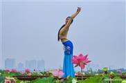 A girl dances near a lotus pond in Chuanshan District in Suining City, southwest China's Sichuan Province, July 2, 2016.