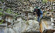 A beekeeper checks beehives in Shennongjia nature reserve, in central China's Hubei province, Sept. 6, 2014.