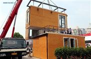 Workers build a modular house in Shijiazhuang, capital of north China's Hebei Province, June 20, 2015. A local company showed their modular house made by recycled materials. The modularization design brings no pollution during building process and could save two thirds of the construction time.